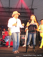 A turma saiu em direção ao palco para ver a "Banda Canários do Reino". A galera toda se divertindo, dançando, cantando, fazendo quadrilha no meio do povo, tirando muitas fotos... A praça do mercado lotou para ver a banda se apresentar. Eu que não sou besta, fui com minha esposa tirar alguma fotos com os cantores da banda. No inicio ela ficou com vergonha, mas superei isso pegando-a pelo braço e puxando dizendo: Vamos AGORA! Aff! Pra que esse medo agora? Vamos!